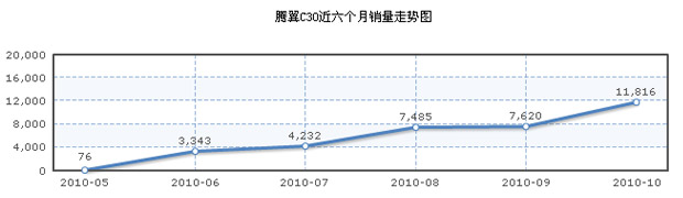 腾翼C30自从面世以来,做为入门级车型的腾翼C30主打A级车市场,尽管最便宜的舒适型起步价只有5.89万,但C30的轴距却达到了2610mm,空间上的优势让C30上市之后立刻引起了消费者的关注,销量表现也大幅递增。目前全系车型搭载了长城自主研发的GW4G15直列四缸发动机,排量1.5升,最大功率77kW/6000rpm(105马力);最大扭矩138N·m。这台发动机被长城广泛运用于旗下炫丽和酷熊系列车型,优点是低转扭矩不错而且很省油,缺点是爆发力不足。